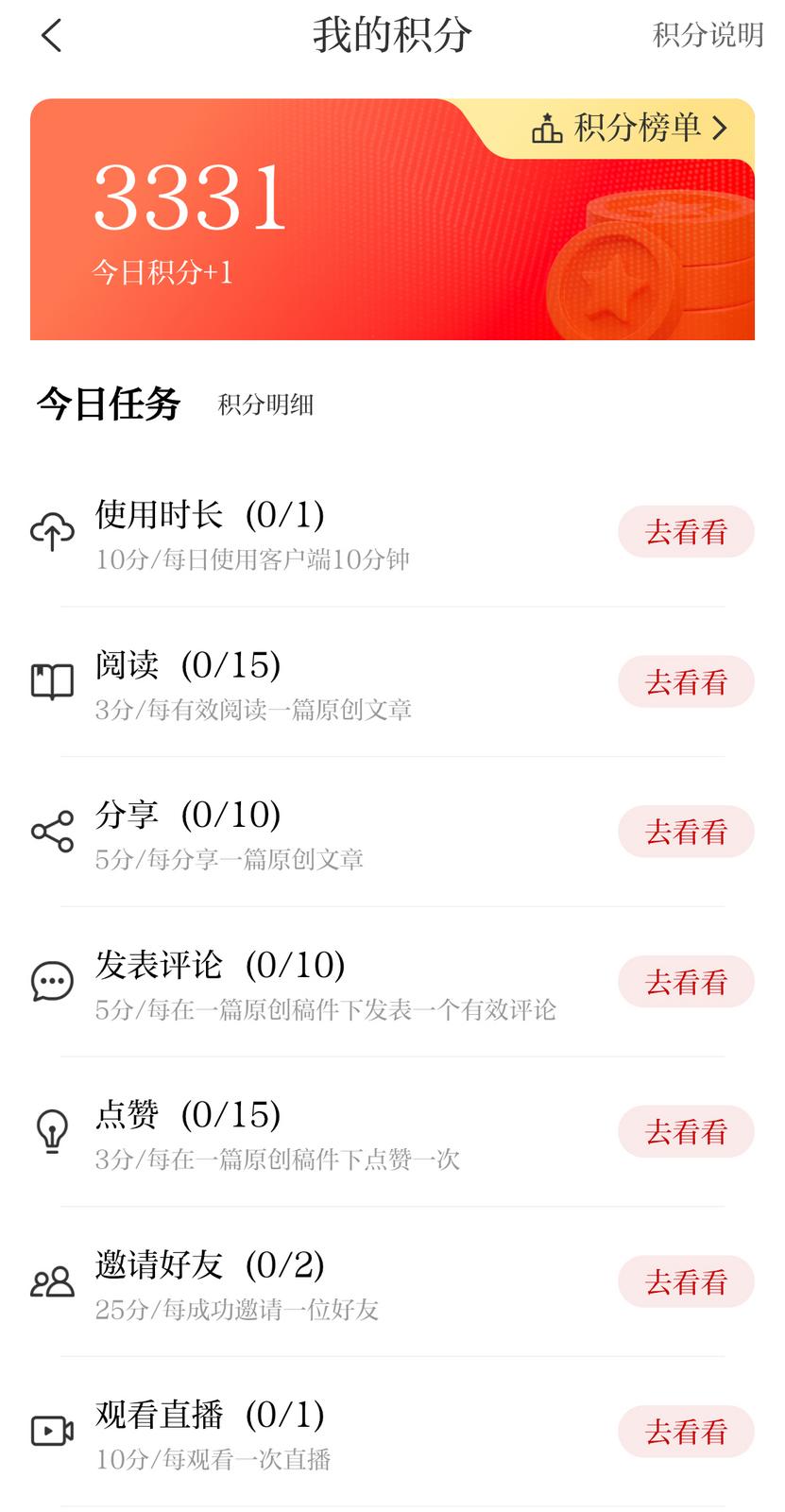 日常参与互动、完成每日任务