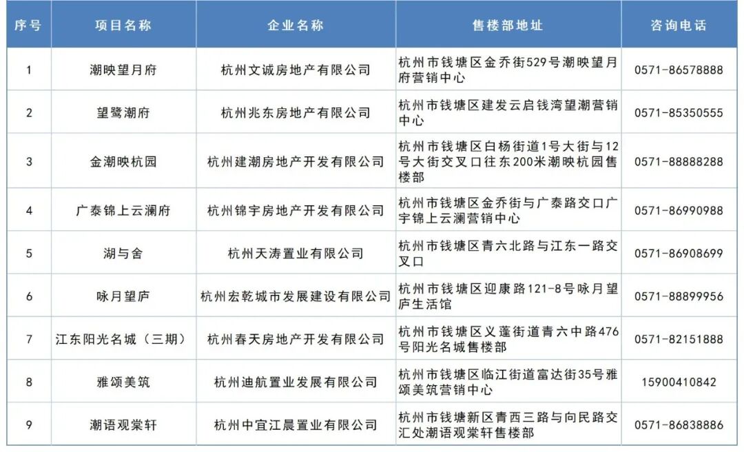 参与楼盘包括潮映望月府、望鹭潮府、金潮映杭园、广泰锦上云澜府、湖与舍、咏月望庐、江东阳光名城(三期)、雅颂美筑、潮语观棠轩等9个项目。