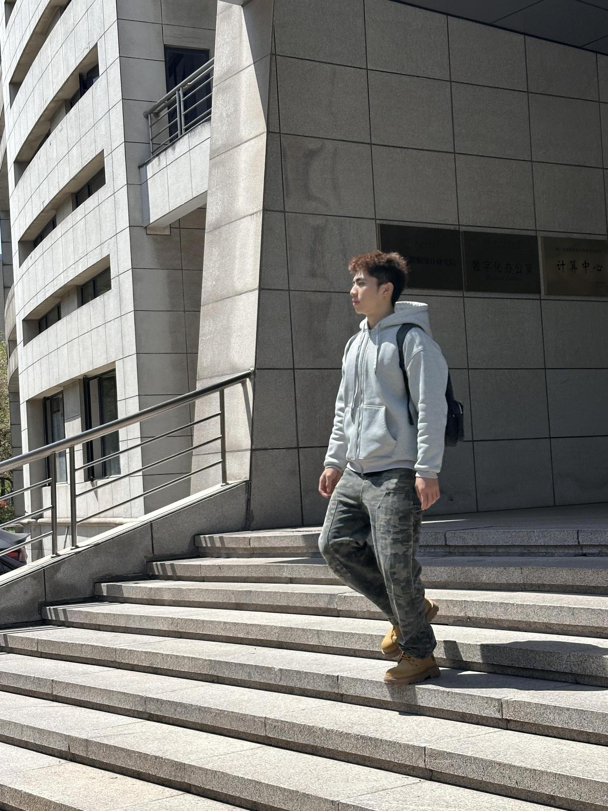 初见王一扬,灰色卫衣,身材挺拔,肩膀宽阔,让人眼前一亮。