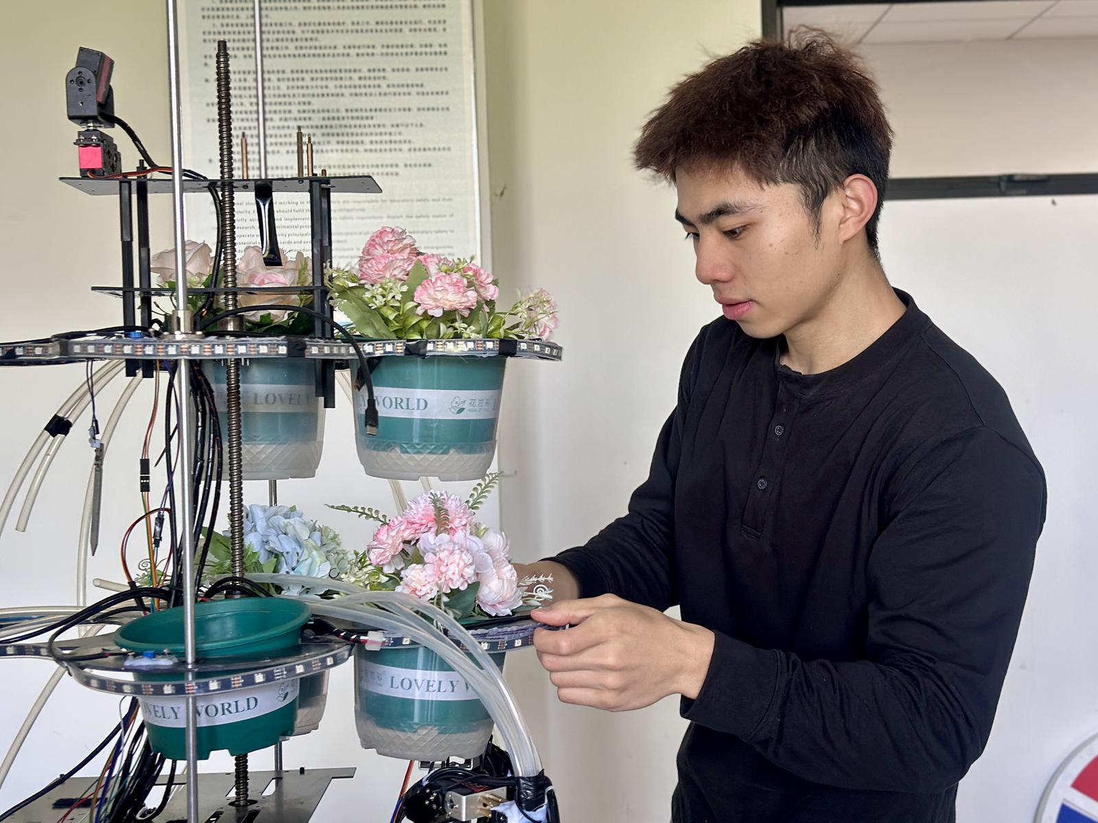 “这是我自己‘手搓’的,也是最费心血的一件。”王一扬笑着介绍,“它有一个浪漫的名字:‘绿野仙踪’。”这台能全自动照顾花草的家庭机器人,具备自主导航、自动补水、追光移动等功能。他一边说一边用手指着各个部件,像在介绍一个老朋友。